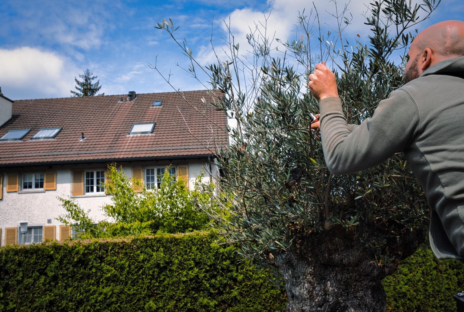 Ein Olivenbaum braucht Pflege, um gesund und schön zu bleiben. Wir übernehmen gerne den fachgerechten Rückschnitt – nicht nur bei Oliven, sondern auch bei anderen Gehölzen. Auch Pflanzenschutz und gezielte Düngung gehören zu unserem Angebot. Damit Ihr Gartenliebling lange Freude bereitet.